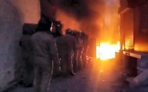 **EDS: GRAB VIA PTI VIDEO** Haldwani: Security personnel at the site after a group of protestors hurled stones and set vehicles on fire after officials demolished a madrasa, in Haldwani, Uttarakhand, Thursday, Feb. 8, 2024. (PTI Photo)(PTI02_08_2024_000346B)