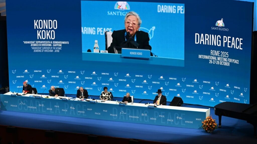 Odiare la guerra, non le persone: la lezione di Hiroshima. L’intervento di Koko Kondo, sopravvissuta al bombardamento atomico, ieri all’Assemblea inaugurale del meeting internazionale delle religioni e culture per la pace promosso dalla Comunità di Sant’Egidio. “Possiamo scegliere un futuro senza armi nucleari. Facciamo in modo che ciò che è accaduto a Hiroshima non si ripeta mai più, in nessun luogo e per nessuno”.