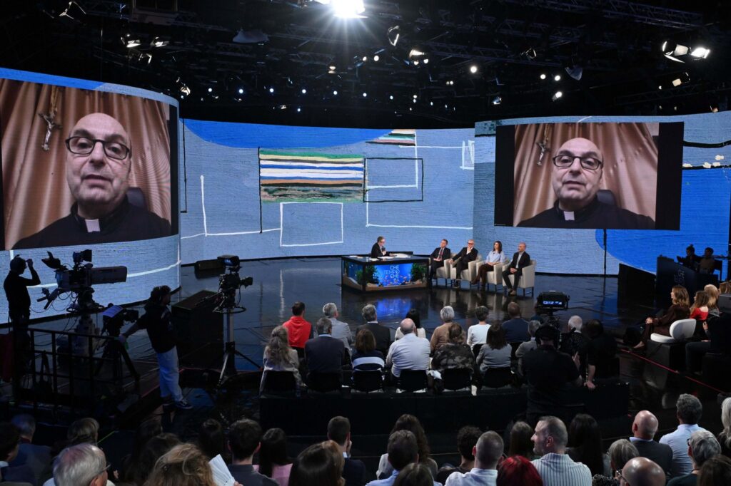 Il parroco della Sacra Famiglia intervistato da Fabio Fazio, in collegamento video con Che tempo che fa.